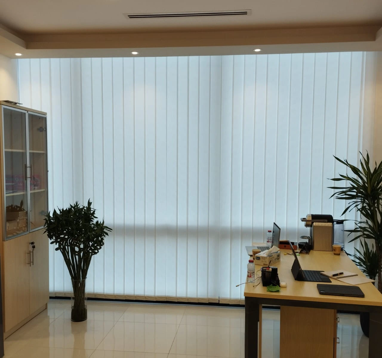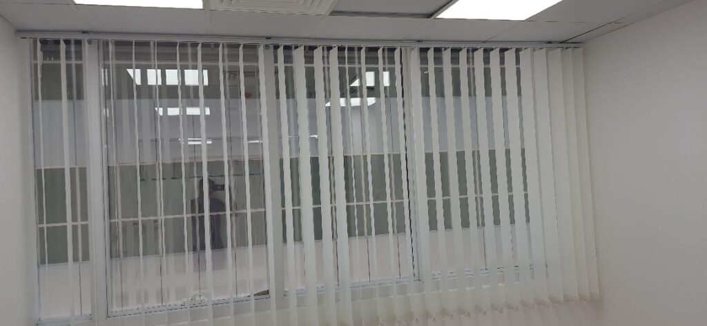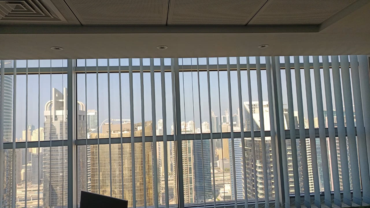 Vertical blinds are window coverings that consist of individual vertical slats or louvres, which are usually made of fabric, vinyl, or metal. These slats hang up from a top rail and can be adjusted to control the amount of light that enters a room or to provide a sense of security. Here is a point-by-point description of how vertical blinds work and what to look for